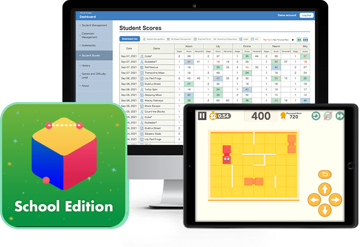 Each time your children solve a puzzle, they can see a visualization of the problem on the screen. For example, a problem could show how a 3D object is cut to make a cross-section or how a net is assembled. Even if, at first, the concept is difficult to understand, they will gradually be able to visualize abstract ideas and concepts in their head by themself.