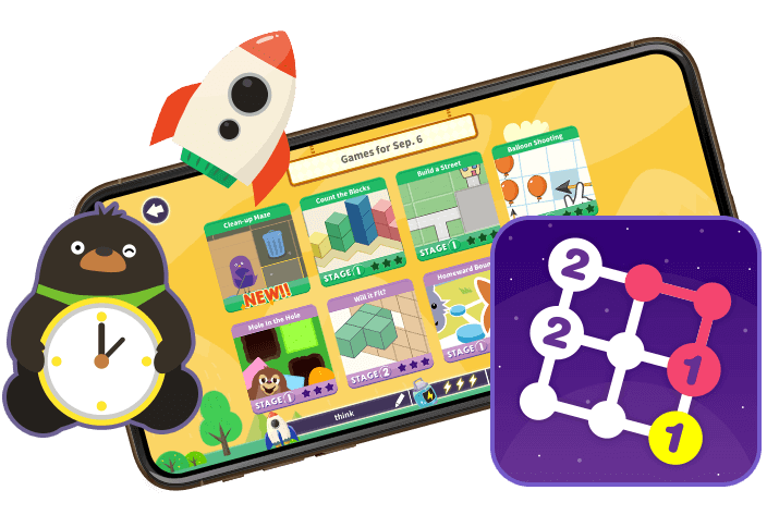 Think!Think! is designed so that rules can be understood intuitively, and the problems are tailored to each child's individual level. Should your child have a hard time with a particular question, you can guide them toward the hint button on the screen.